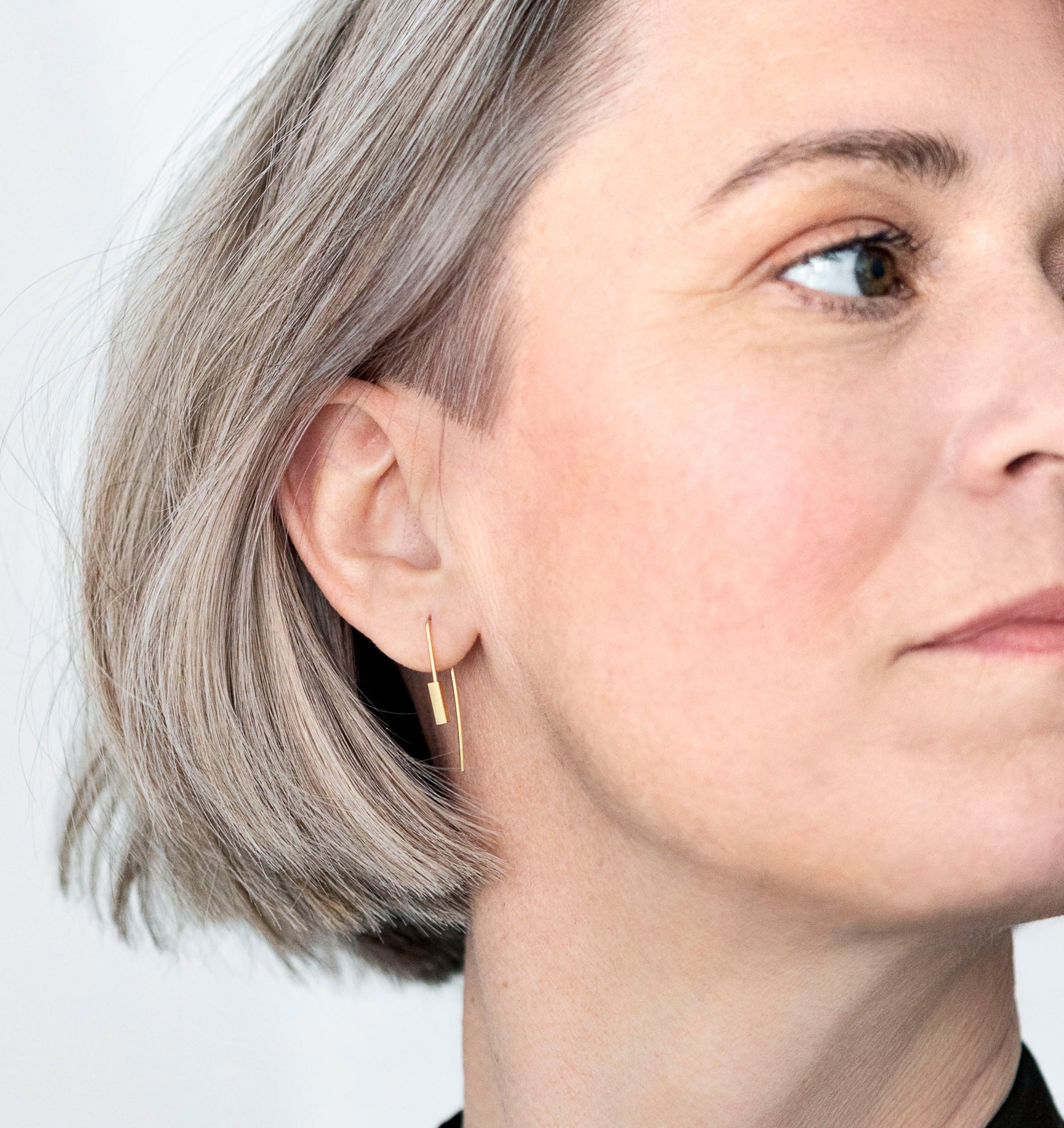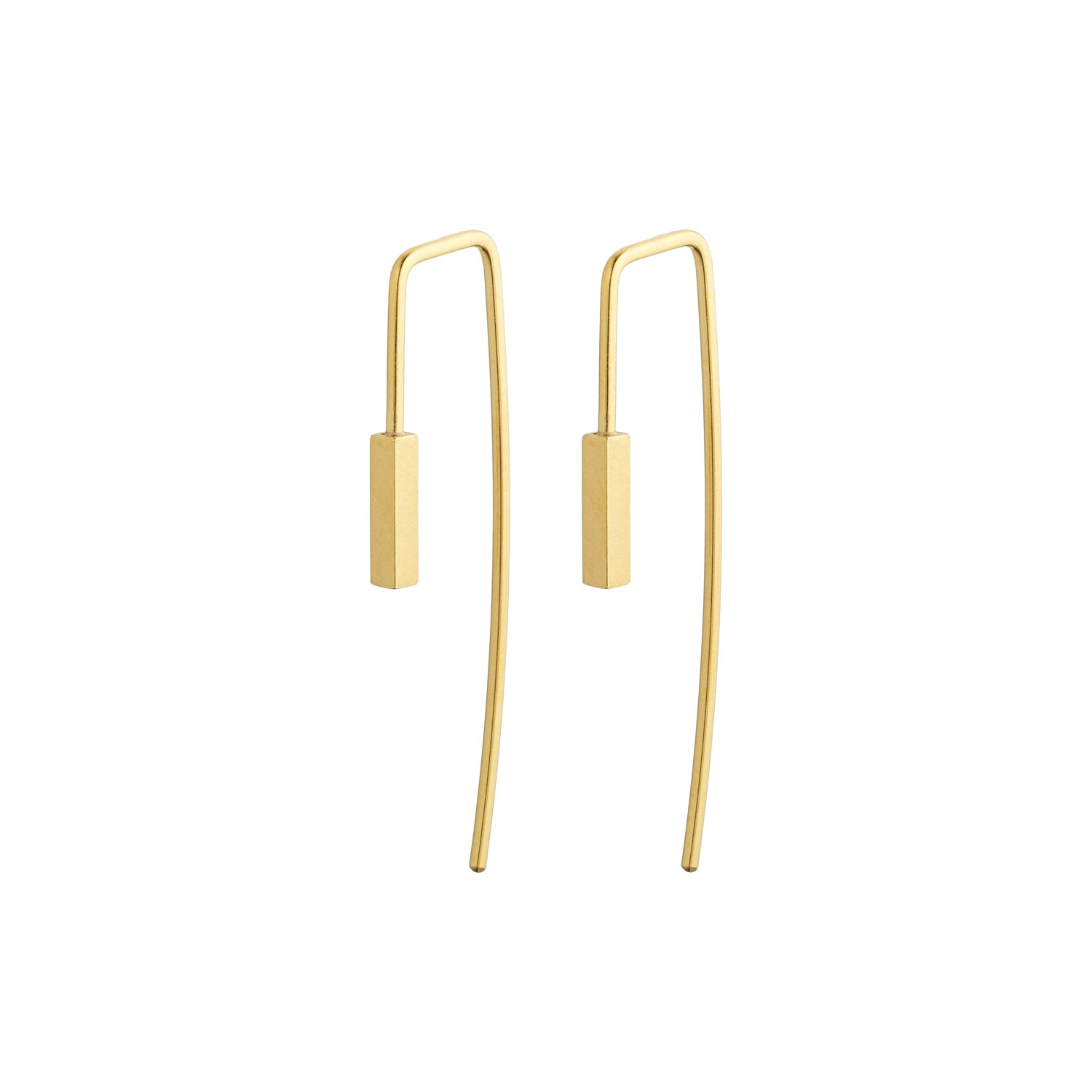 Elegante ørehængere med firkantet guldled i forgyldt sølv. På en gang klassiske og helt specielle. Fåes også i 14kt guld, og med farvede stendråber. Sælges i sæt.